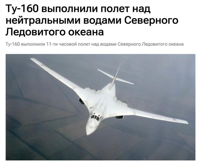 11月26日电 据俄新社本地技术25日征引俄罗斯邦防部新闻,俄军图-160近程计谋轰炸机正在北冰洋中坐火域上空停止了例止巡航。图片根源:俄新社报导截图  讲明称, “图-160近程计谋轰炸机正在北冰洋中坐火域上空施行了1次例止遨游飞翔。遨游飞翔时分超越11小时。”  注脚借提到,这次遨游飞翔严厉恪守邦际空域应用划定规矩。